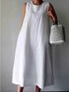 Poletje 2023, nova, enobarvna, konoplja, ohlapna korejska majica brez rokavov, krilo z okroglim izrezom, srednje dolga obleka