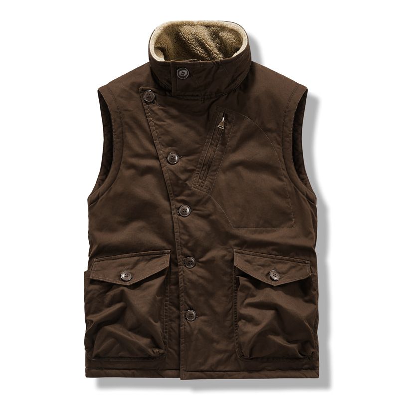 Featured velvet vest with multiple pockets, vintage classic American hunting outfit, single breasted slanted chest, and camisole jacket for men