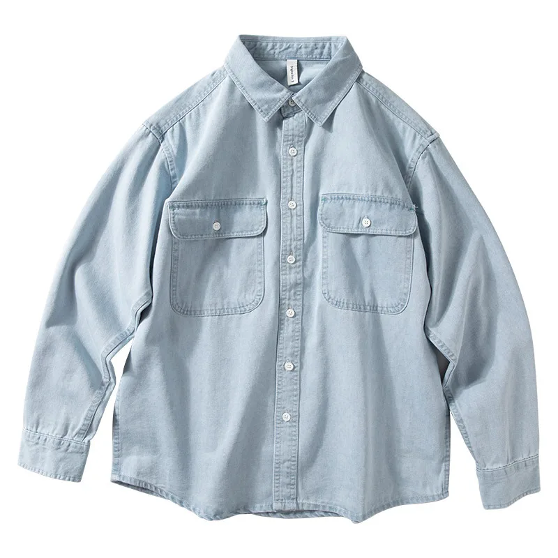 Retro Denim Shirt Men Casual Washed Cotton Jeans Top Streetwear Men Long Sleeve Single Breasted Men Shirts Vintage Shirt Male