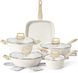 Set loncev in ponev, kompleti kuhinjske posode z neoprijemljivo posodo Indukcijska posoda iz belega granita, nestrupena zdrava kuhinjska garnitura proti sprijemanju s kompletom ponev