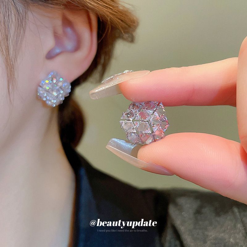 Silver Needle Zirconia Three-Dimensional Square Personality Cold Style Commuting Stud Niche High-End Sense Of Design