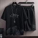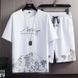 Moški komplet iz dveh delov s kratkimi rokavi in potiskom snežnih gora, oprijet kroj