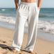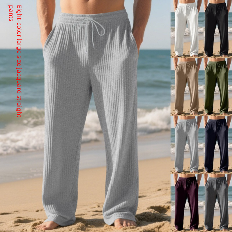 Spring And Autumn Jacquard Striped Wide-Leg Casual Loose Ribbed Drawstring Straight-Leg Plus Size Men's Pants