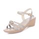 Pomlad/poletje Novi ženski sandali iz pravega usnja z nizko peto in ježkom za mame WNN6001, plus velikost 35-43