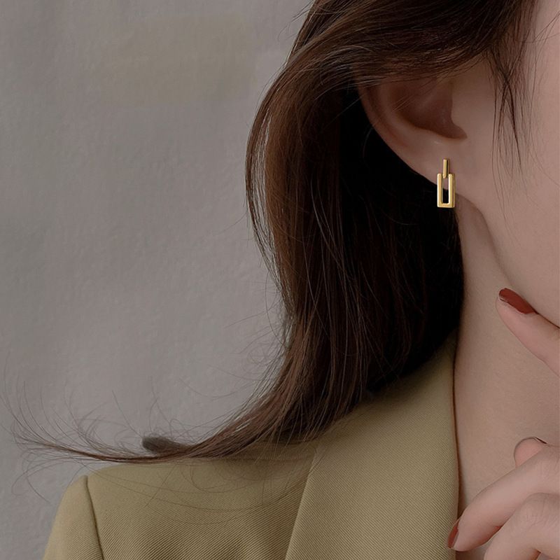 Srebrna igla, geometrijski kovinski slog, minimalistični INS, majhni hladni uhani in obeski za ženske
