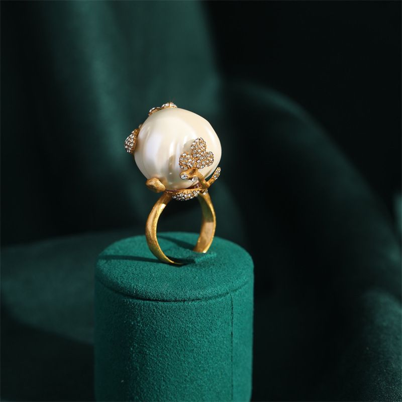 Srednjebaročni biserni diamantni nakit za ženske, vrhunski in nišni medeninasti prstan