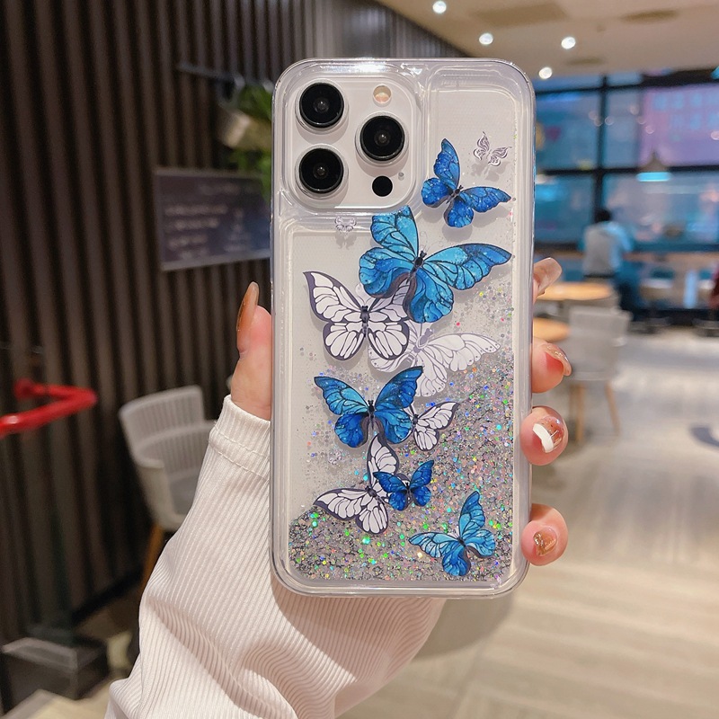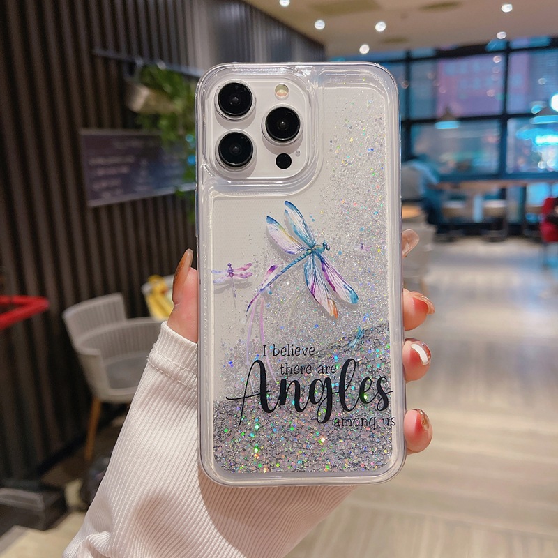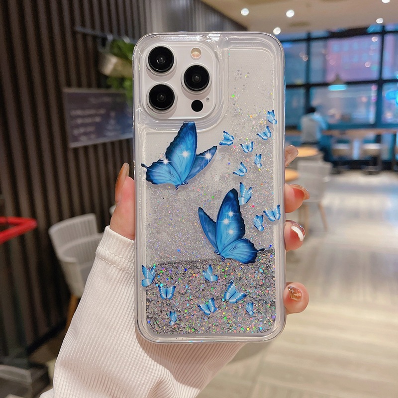 Suitable for 15ProMax phone case, Apple 14 Butterfly Dragonfly Sparkling Powder, Sand S24 Protective Case, Mate60 Trendy