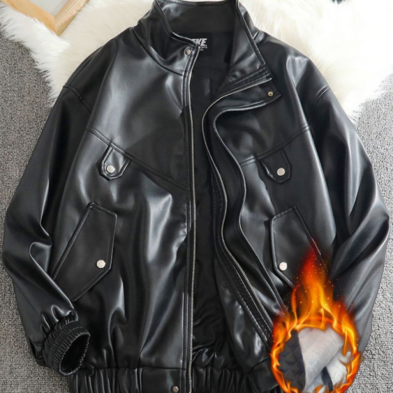 American Style PU Cool Handsome Flight Jacket Streetwear Motorcycle Sheepskin Pattern Coat Men Autumn Winter Trendy Thick Loose Casual