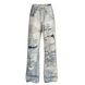 High Street Washed Loose Wide-Leg Pattern Printed Jeans Straight-Leg Pants for Men