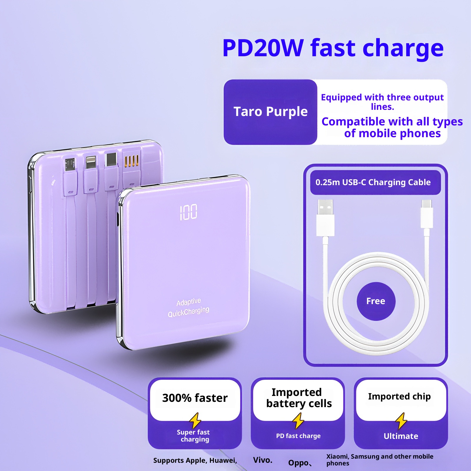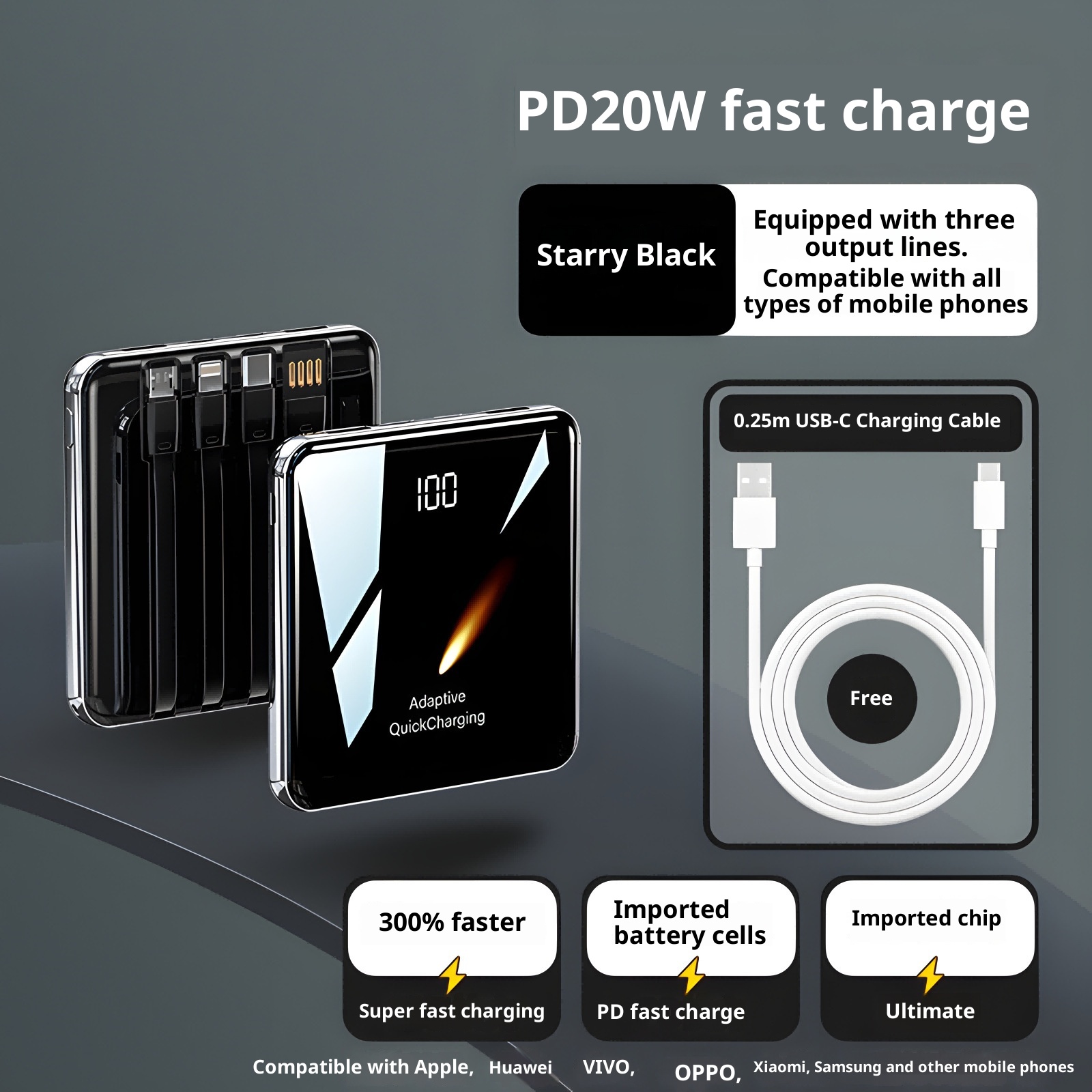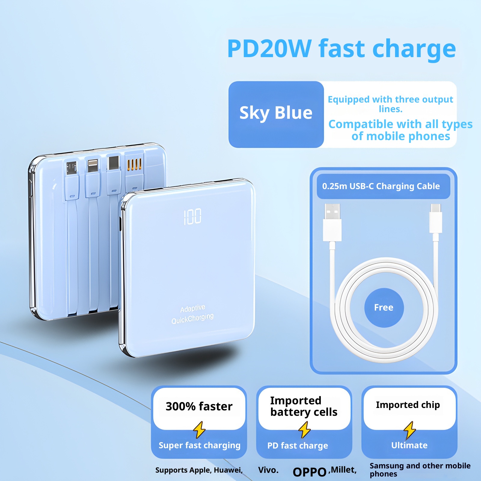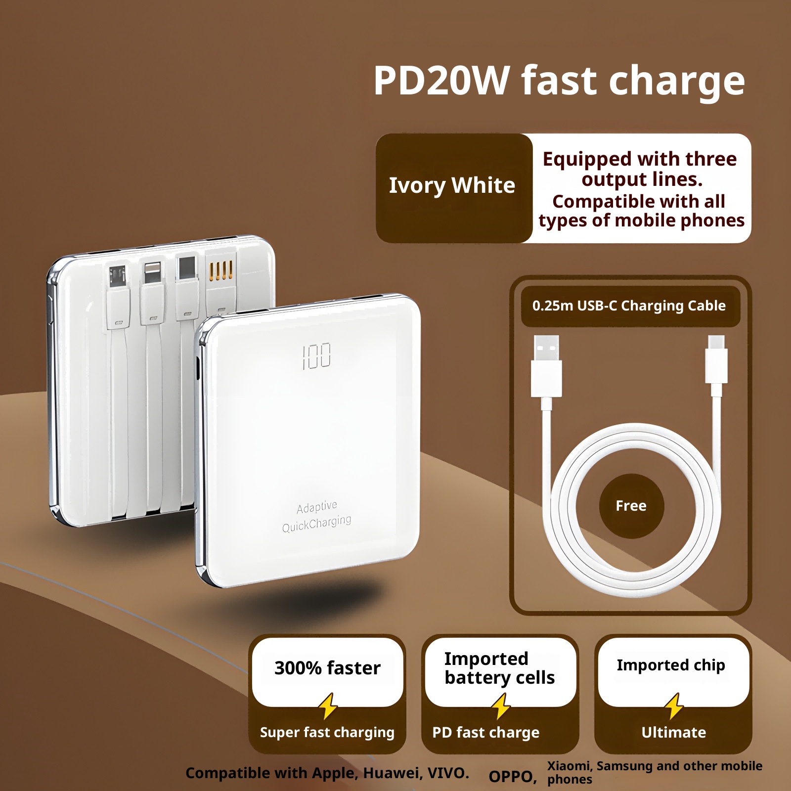 techglobe 3C Certified Mini Built-in Cable 20000mAh Ultra-Thin Bank Fast Charging Mobile Power High-End Gift Custom
