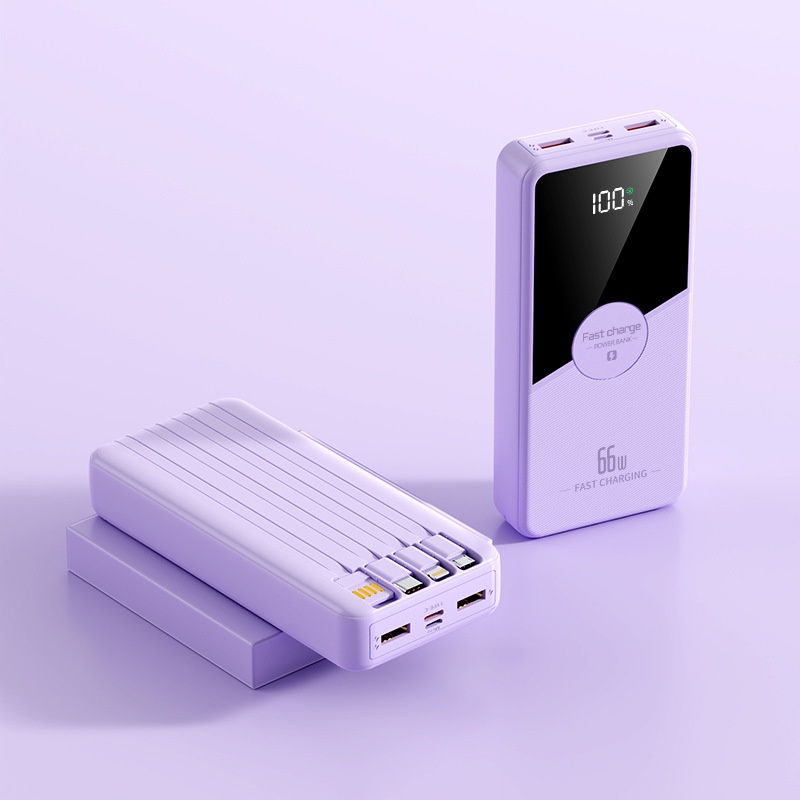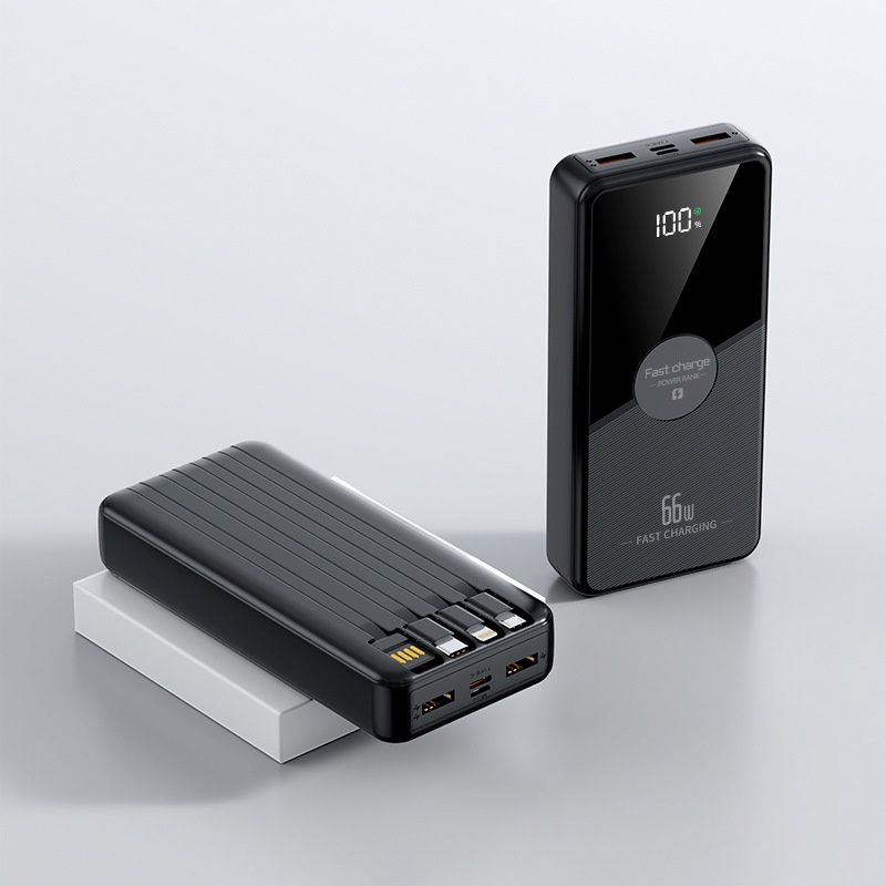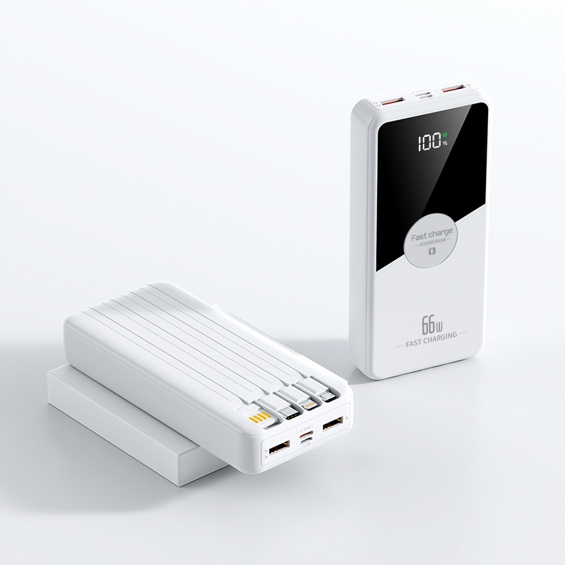techglobe 66w Super Fast Charging Power Bank With Built-in Cable 2w Milliamp Large Capacity Convenient Portable Charger Gift
