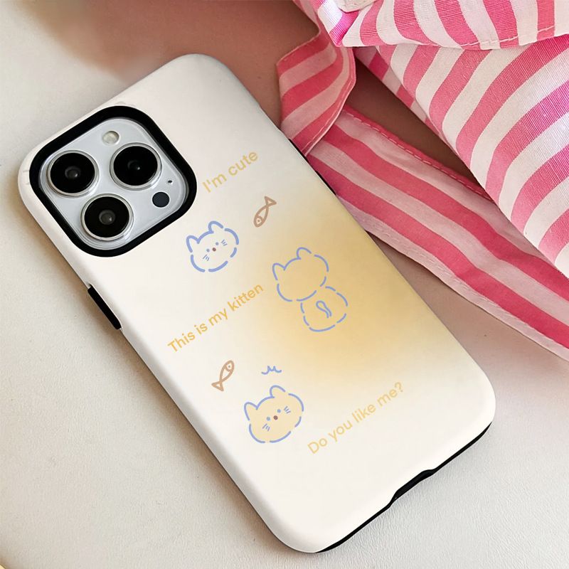 TechGlobe Light Yellow Kitten Doesn't Eat Fish Phone Case Compatible With 14 Pro Max Film 2-in-1 Rounded Edge Full Coverage