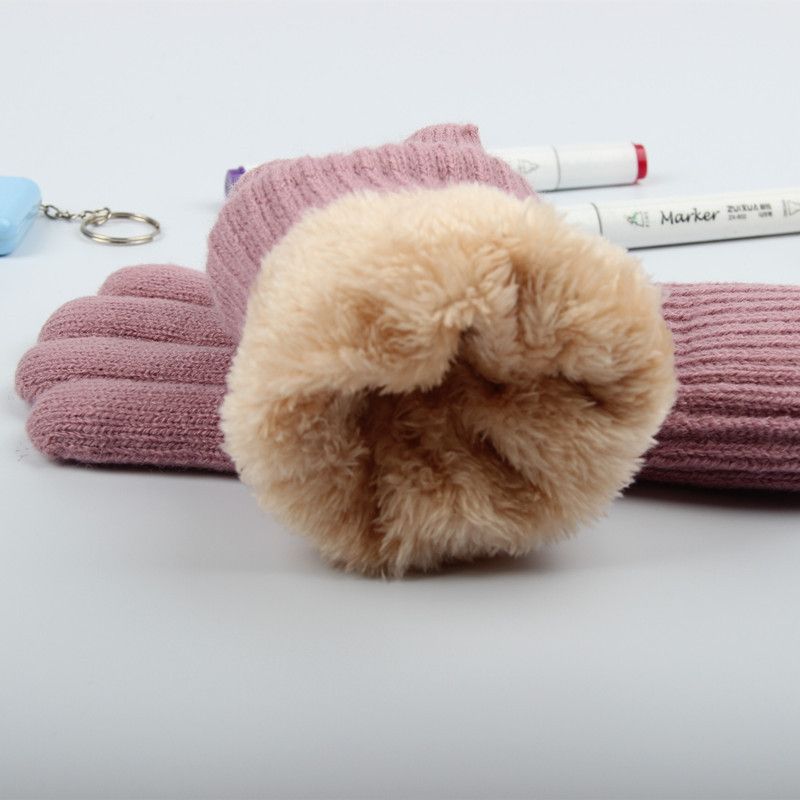 Thickened Layer Ladies Winter Warm Gloves, Knitted Wool Lining, Wool Lining, Not Compatible With Touch Screen,