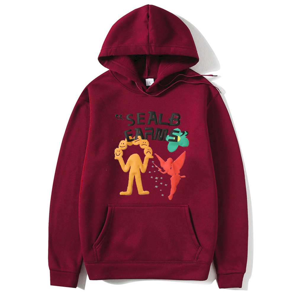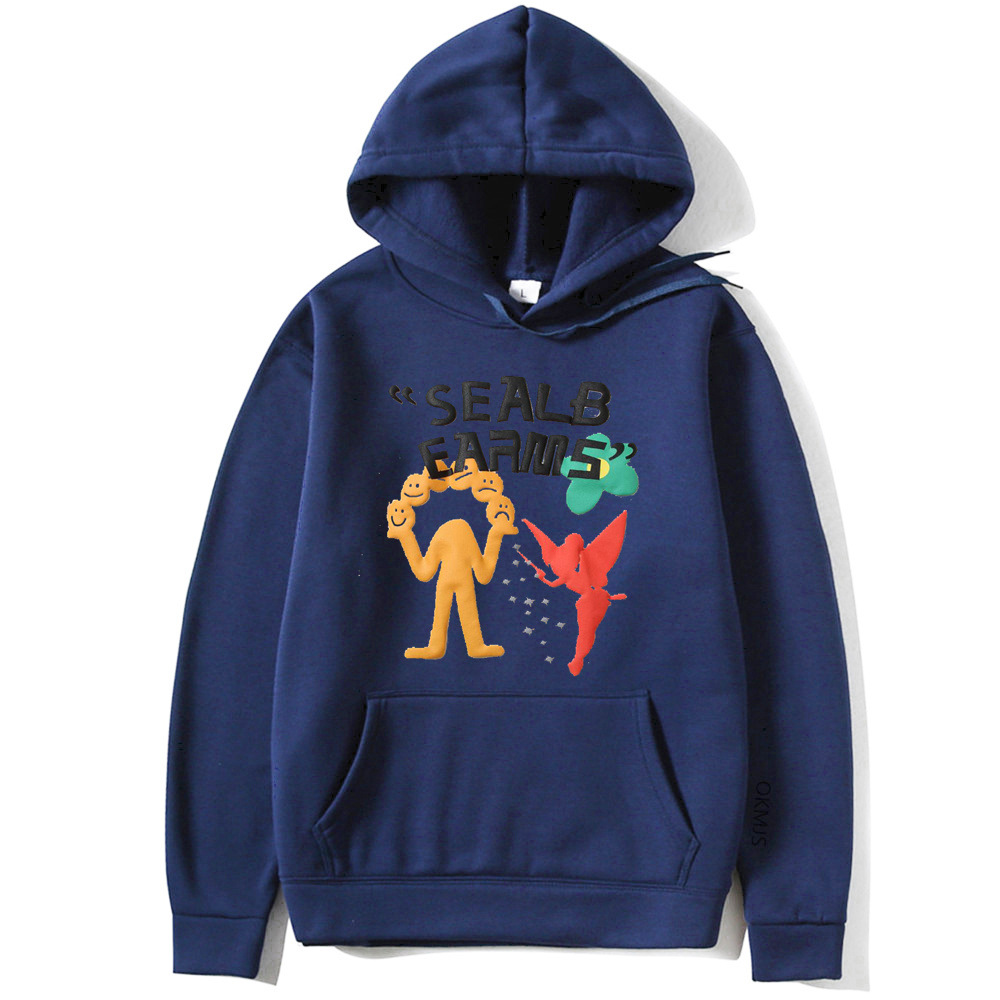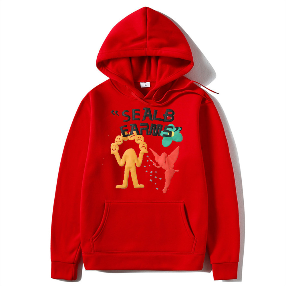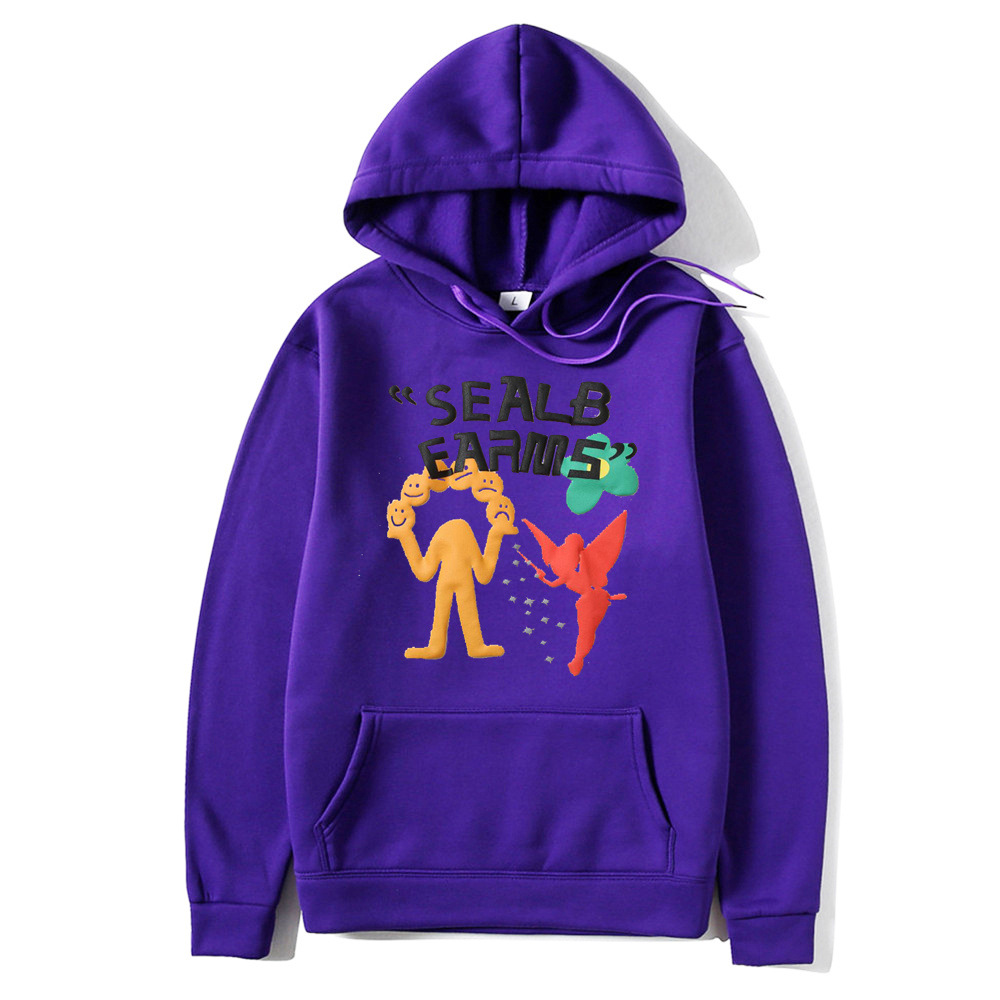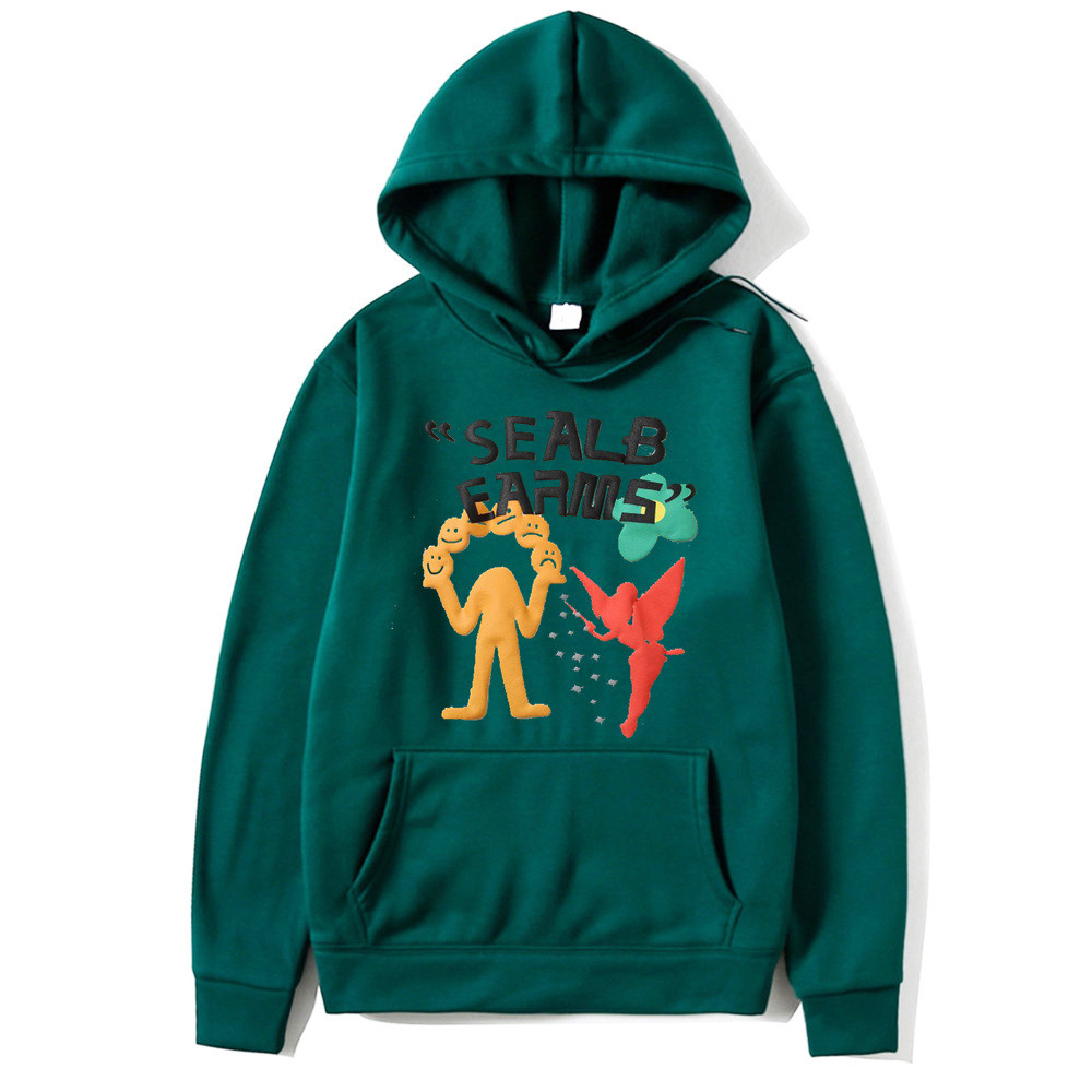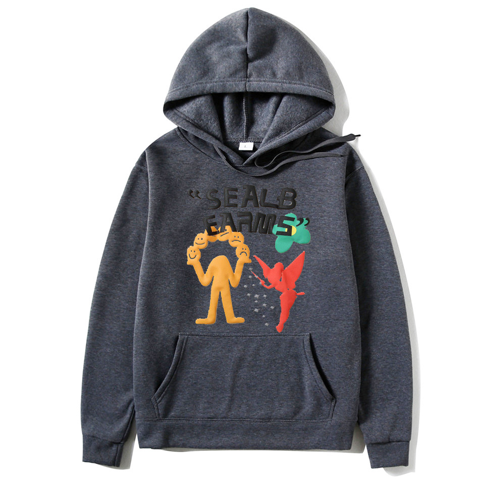 Trendy men's Kanye graffiti foam printed round neck plush sweater FOG