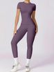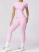 VoleFox 2/4 Counts ženska enobarvna majica z okroglim ovratnikom in pajkice z visokim pasom Trenirka, športna udobna majica s kratkimi rokavi in ozke hlače za vadbo v jogi