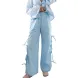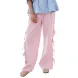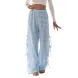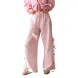 Women's Casual Loose Wide-Leg Pants Solid/Plaid/Striped Side Bow Tied Mid Elastic Band Baggy Long Trousers for Lounge Streetwear