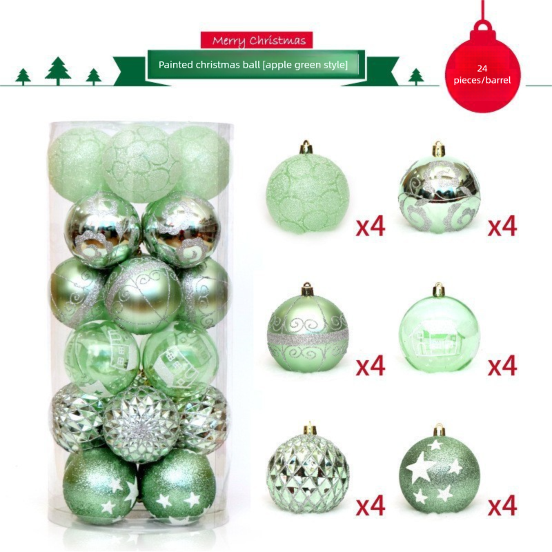 Christmas Decoration 6cm 24pcs PVC Bucket Colored Christmas Ball Set