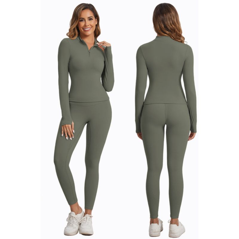 Women Winter Suit Zipper Coat Tops Slim Warm Sportswear Two Piece High Waist Yoga Pants