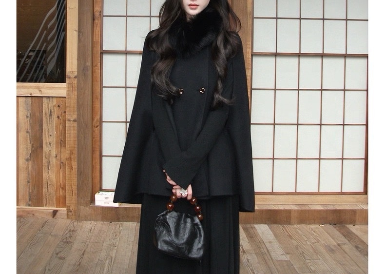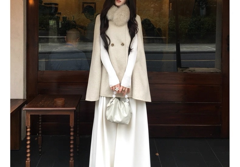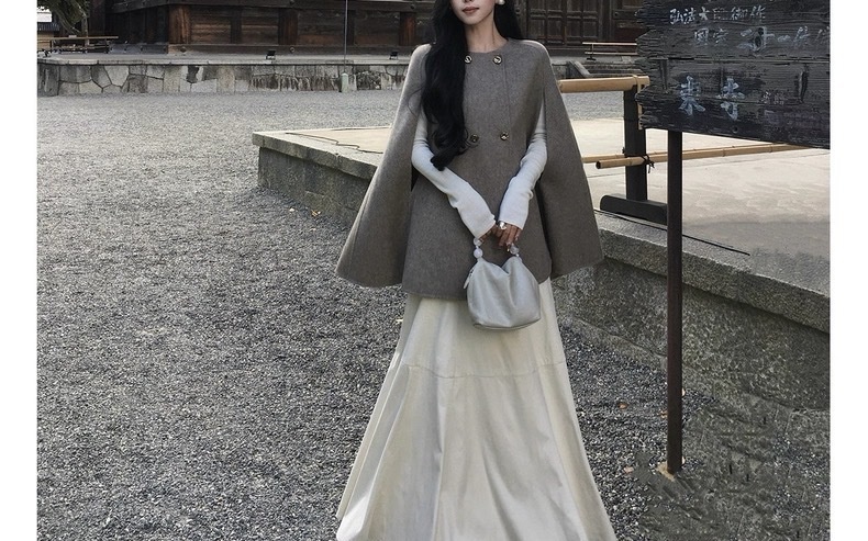 Women's Clothing Women's Clothing Chaebol Heiress Double-Sided Cape Wool Coat Women's Autumn Winter Short Woolen Overcoat