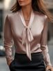 Women's Elegant Satin Lace-Up Blouse – Long Sleeve Solid Color Shirt (Black/White/Pink/Violet, S-XXL)