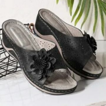 Ženski veliki copati 2024 Novi spomladanski in jesenski sandali z votlo poševno peto, čevlji za na plažo z rožico