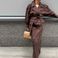 Imagine starting your morning effortlessly - simply slip into this perfectly paired set and you're ready to conquer the day. The rich brown hue transitions seamlessly from morning meetings to afternoon coffee dates, while the comfortable stretch fabric moves with you through every activity. Layer it over a crisp white blouse for office professionalism, or pair with a soft knit top for weekend sophistication.