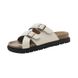 Women's Summer Platform Sandals - Adjustable Leather Strap Slide Sandals (4cm Cork Sole, Retro Buckle Design, Beach & Streetwear)