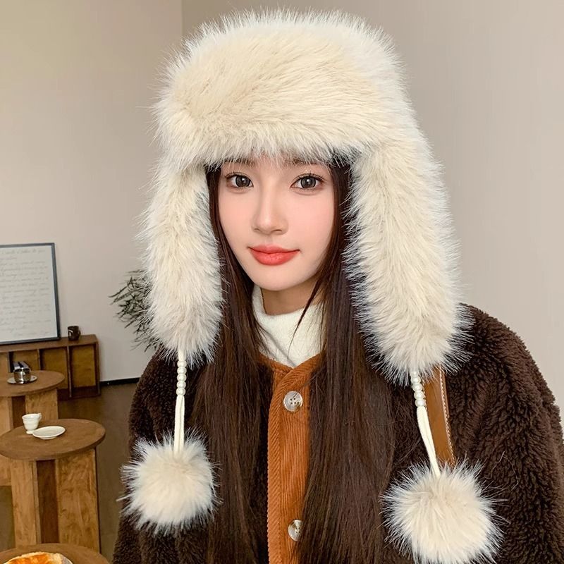 Hat Women's Winter 2023 New Cold and Warm Versatile Plush Lei Feng Hat Black Thickened Plush Ear Protection Hat