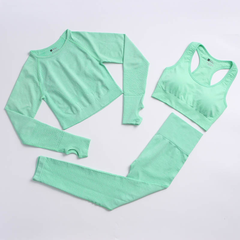 Product Details:Soft stretch seamless fabricBra/Shorts/PantsMaterial: NylonFeature: Breathable, Quick-drying, Colorfast;Suitable season: Spring, Summer, Autumn, WinterApplicable scene: Running, Gym Fitness, Yoga, Cycling, Dancing,Features1. Good air permeability, moisture absorption sweat and good comfortis the first choice for women's sports.2. High-grade Fabric, stretches well, Colorfast and Healthy for your skin.3. Fine workmanship, High-quality Brand.4. High Elastic Fabric, Comfortable and Sexy.5. Shape a better hip shape-Peach rump.