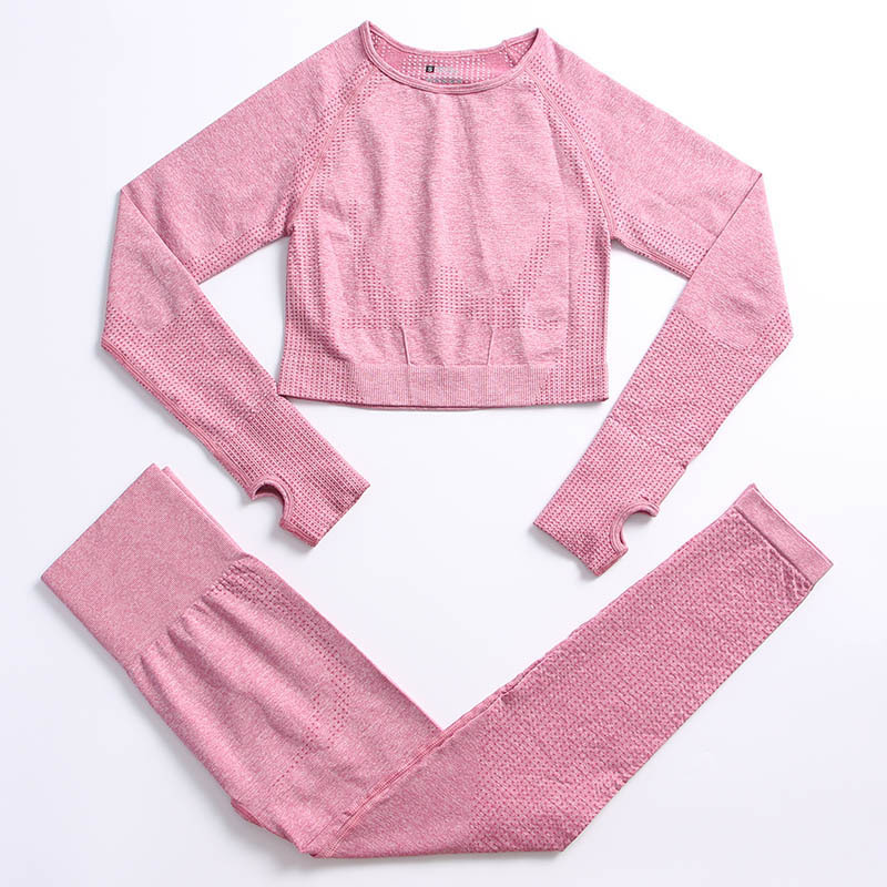 Obleka za jogo z dolgimi rokavi, brezšivna oprijeta pikčasta športna oblačila Ženska visokoelastična tekaška obleka za fitnes