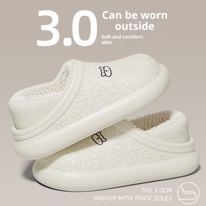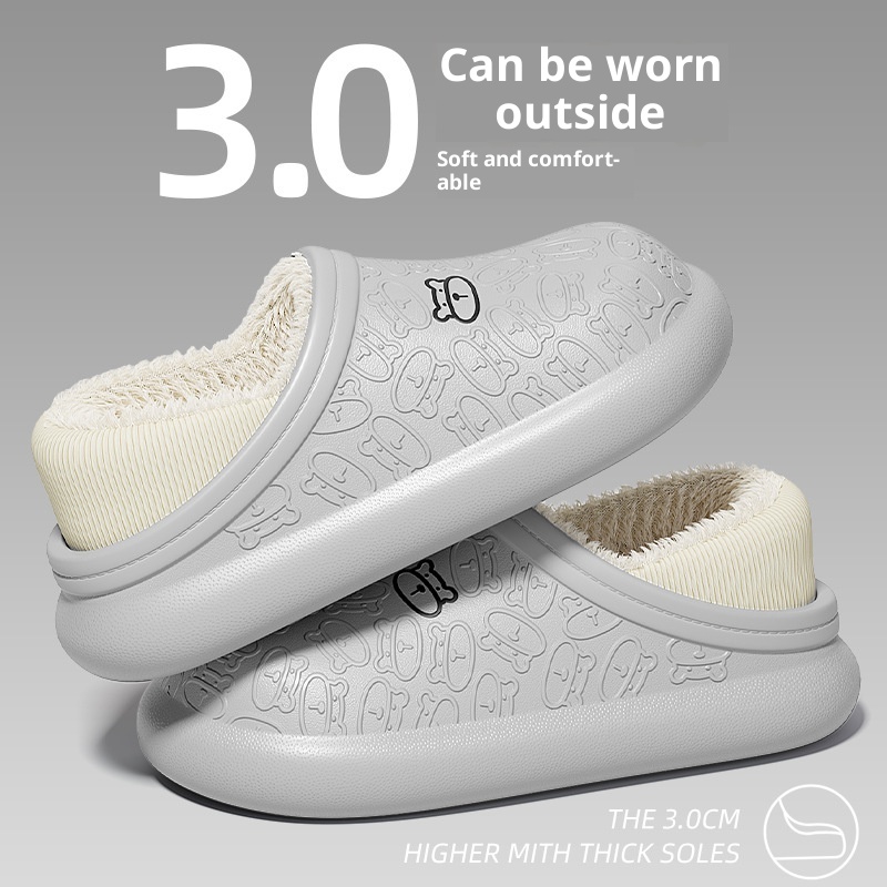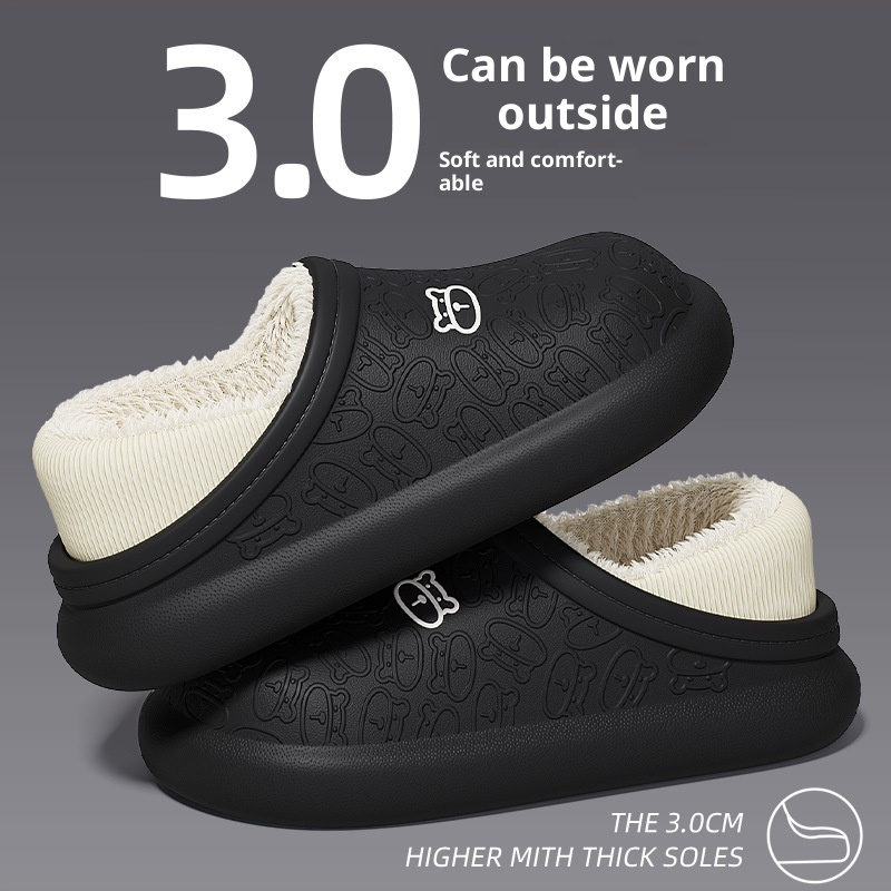 Zees New EVA Waterproof Cotton Men, Autumn And Winter Indoor Home Fleece-Lined Warm Non-Slip Soft Cushioning Plush Slippers