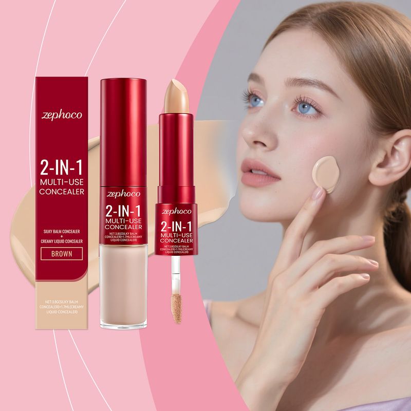 Zephoco Brown Hydrating Concealer 2-in-1 Concealer Liquid Stick Modifies Skin Tone for a Natural Makeup Effect